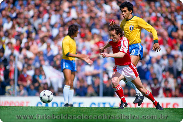 | Formação da Seleção Brasileira no Amistoso com País de Gales, em Cardiff; Crédito da Imagem: www.soccernostalgia.blogspot.com/Revista-Onze |